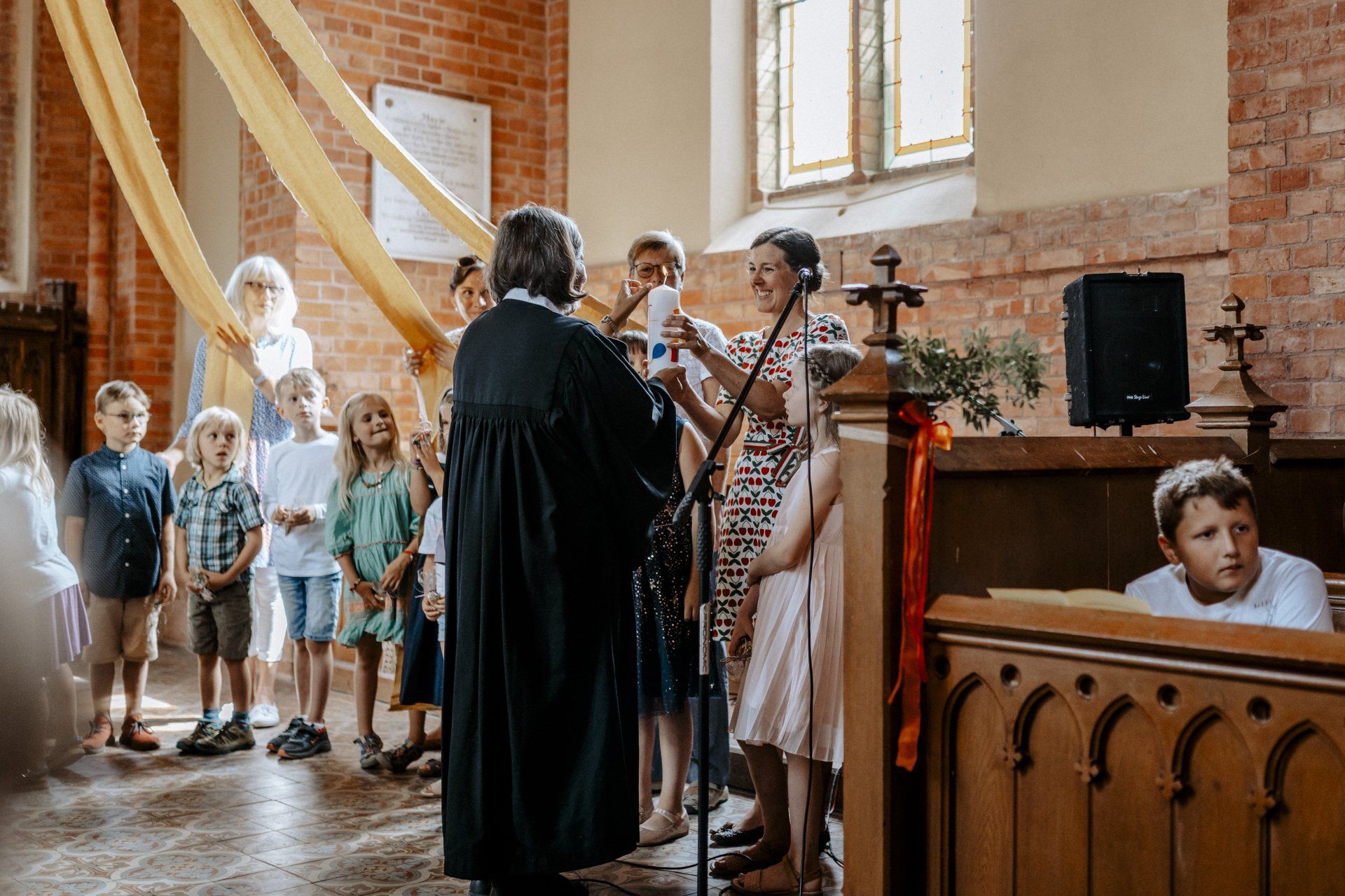 Bei herrlichem Sommerwetter saßen mehr als 250 Gäste dicht gedrängt in unserer festlich geschmückten kleinen Dorfkirche.