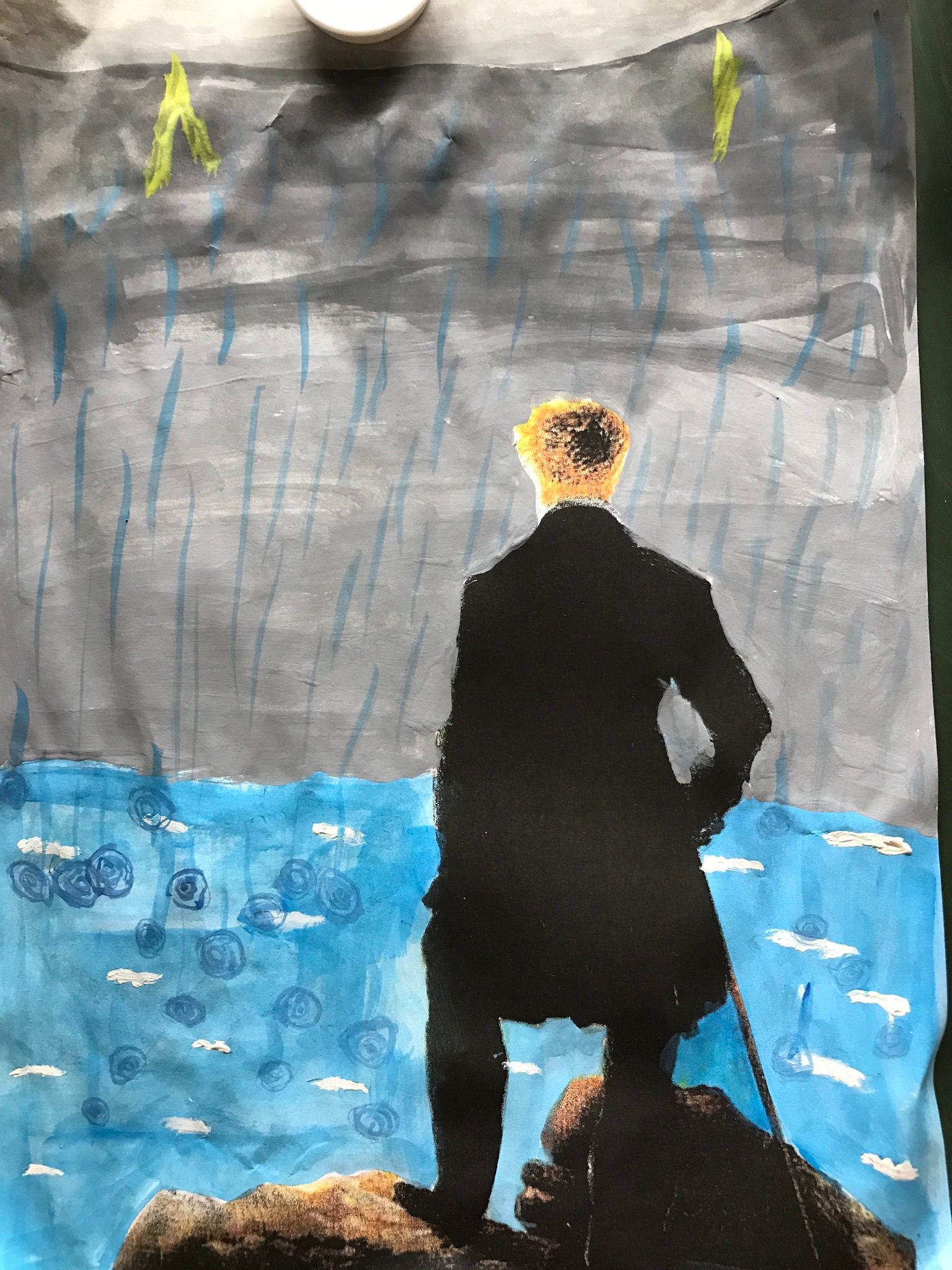 Unsere Schülerinnen und Schüler haben sich im Kunstunterricht intensiv mit Casper David Friedrich (CDF) beschäftigt. So haben die Schülerinnen und Schüler einen Steckbrief über CDF verfasst, die Kirchruine in Alt Panstorf gezeichnet und es sind Collagen zu dem Gemälde „Wanderer über dem Nebelmeer“ entstanden. Am 26.09. wurde in Remplin das Theaterstück „Der Lichtmaler“ aufgeführt. Untermalt mit Gitarrenmusik aus der Zeit der Romantik von Stefan Grasse, hat das Figurentheater Ernst Heiter unsere Schülerinnen und Schüler auf eine Reise in das Atelier von CDF entführt. Der Maler liebte die Natur, lange Wanderungen und die Stille. Papier und Bleistift für erste Skizzen, hatte er immer dabei. In seinem kargen Atelier in Dresden malte er die wundervollen Landschaften nach den entstandenen Skizzen. Heinrich, der kleine Bleistift und der große Pinsel Heinz erinnern sich an den eigensinnigen Maler. Die alte Staffelei schwärmt von seinen Bildern. Die Farben mischen sich ein und auch das Licht hat noch ein Wörtchen mitzureden… Ein sehr gelungenes und für ein jüngeres Publikum geeignetes Stück, dass allen sehr gefallen hat und den Künstler CDF aus einer völlig neuen Perspektive zeigt. Ein Besuch der CDF Ausstellung in Greifswald steht für die Klassen 3,4,5 noch in den nächsten Wochen auf dem Lehrplan.